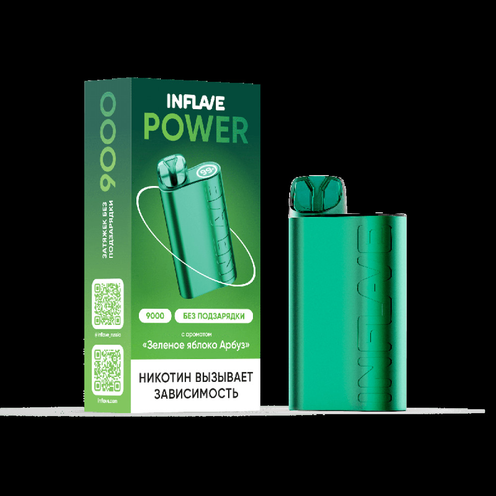 Электронная сигарета INFLAVE POWER 9000 затяжек Зеленое Яблоко Арбуз - купить в Аше